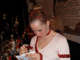 Last weekend were the Dancesport Championships which meant Jer and I both pretty much lived in the WSC the entire weekend. In addition to competing in my own events, I was there to watch and video my students compete in their event (which included Jer :o)) We ended up with 4 spankin new trophies that are looking nice and tacky up on top of our TV at the present. Above is my hair for my Saturday competition done by my good friend Becky. Pretty awesome.